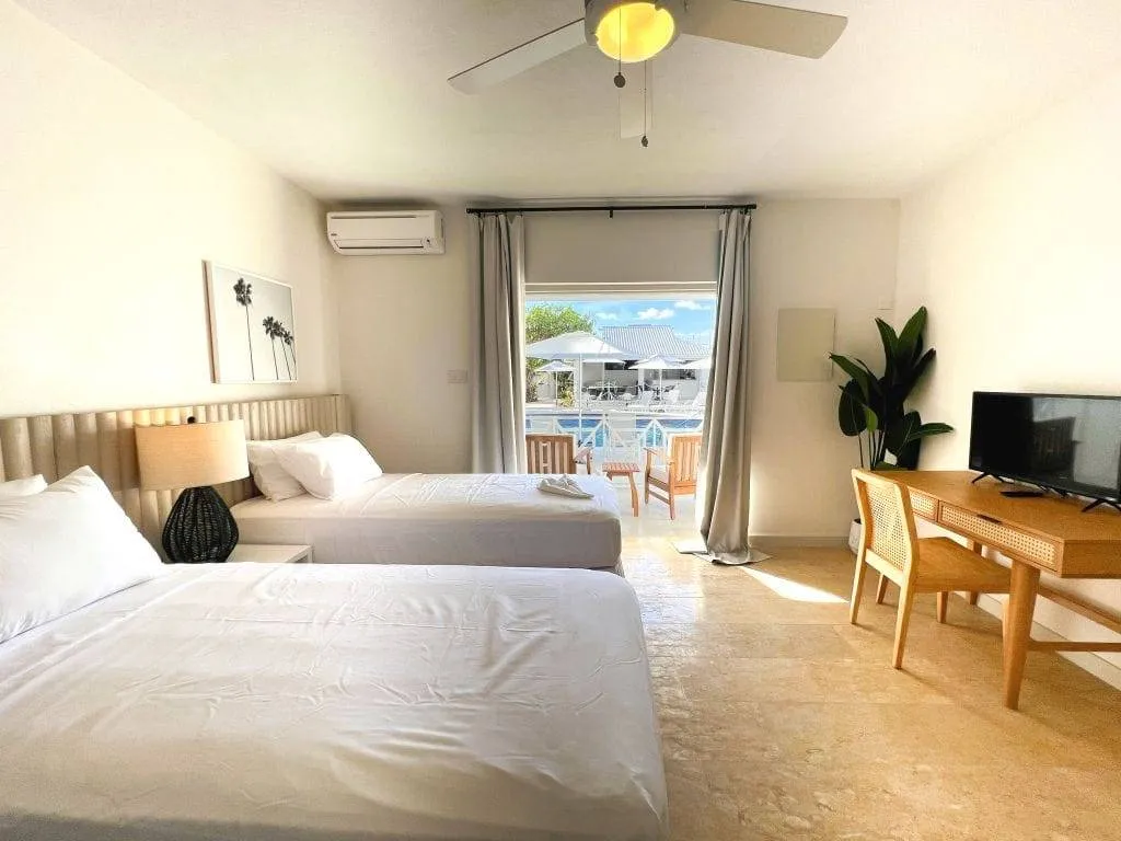 Experience luxury and relaxation in our Pool View Twin room, nestled within our prestigious hotel on Barbados’ vibrant south coast. Immerse yourself in elegance as you step into this spacious sanctuary, meticulously designed with modern furnishings and stylish accents across 423 square feet of space. Indulge in breathtaking vistas of our tranquil pool area from your private balcony, where the sparkling waters and warm Caribbean sun create an idyllic backdrop for unforgettable moments.